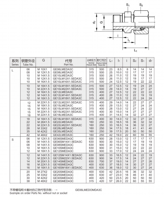 GE06LMEDA3C,GE15LMEDA3C,GE16SMEDA3C,GE10LM12X1.5EDA3C,直通接頭
