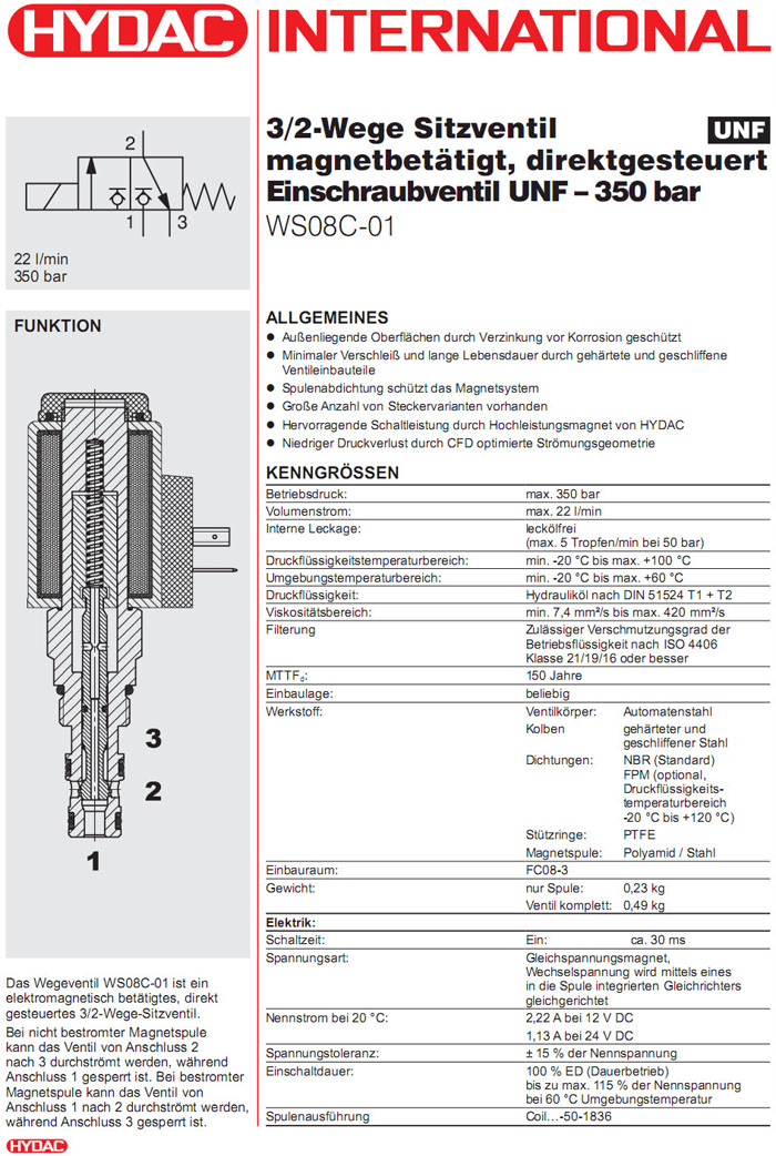 WS08C-01-C-N-12DG,WS08C-01-C-N-24DG,HYDAC二位三通方向提升閥
