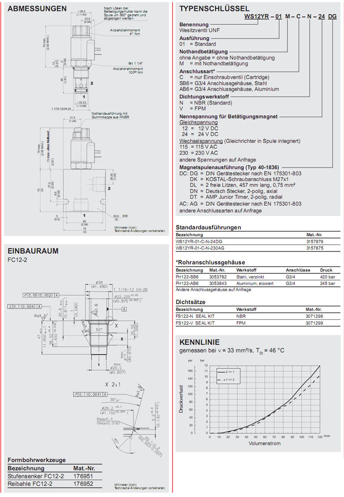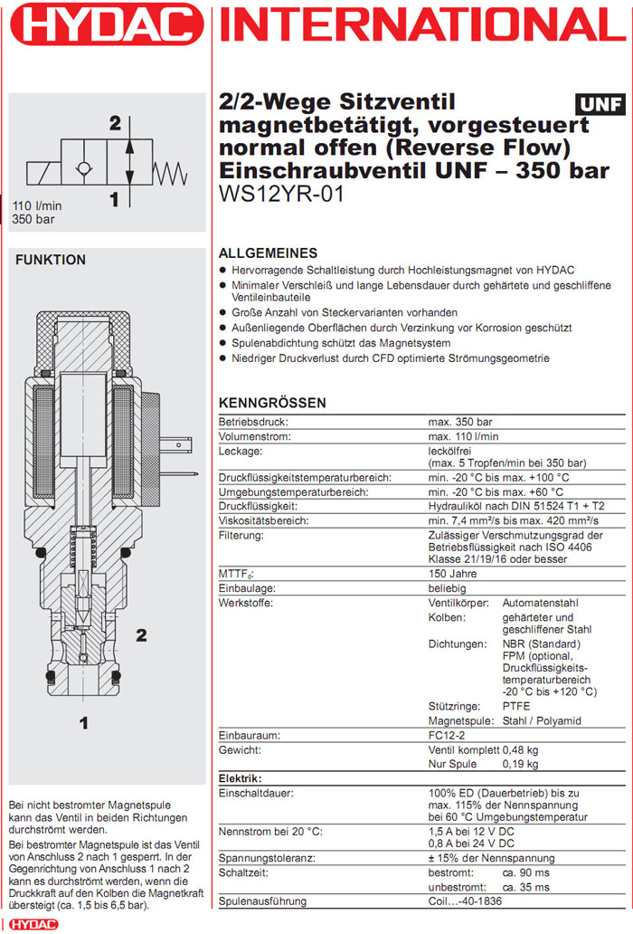 WS12YR-01-C-N-24DG,WS12YR-01-C-N-230AG,HYDAC電磁2/2方向座閥