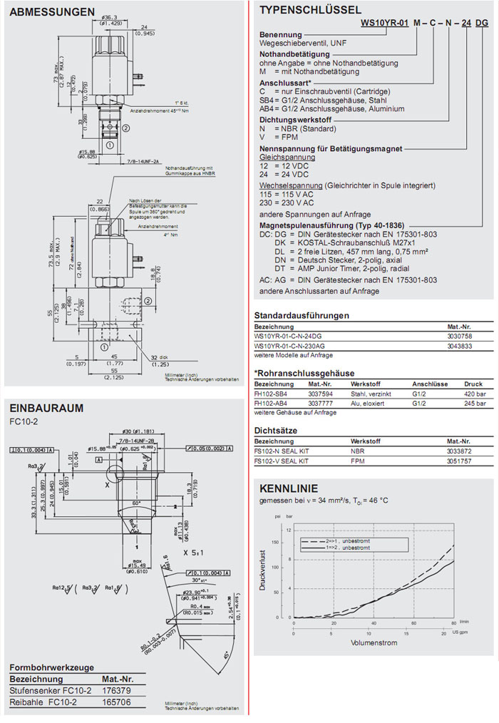 WS10YR-01-C-N-24DG,WS10YR-01-C-N-230AG,HYDAC電磁2/2方向座閥