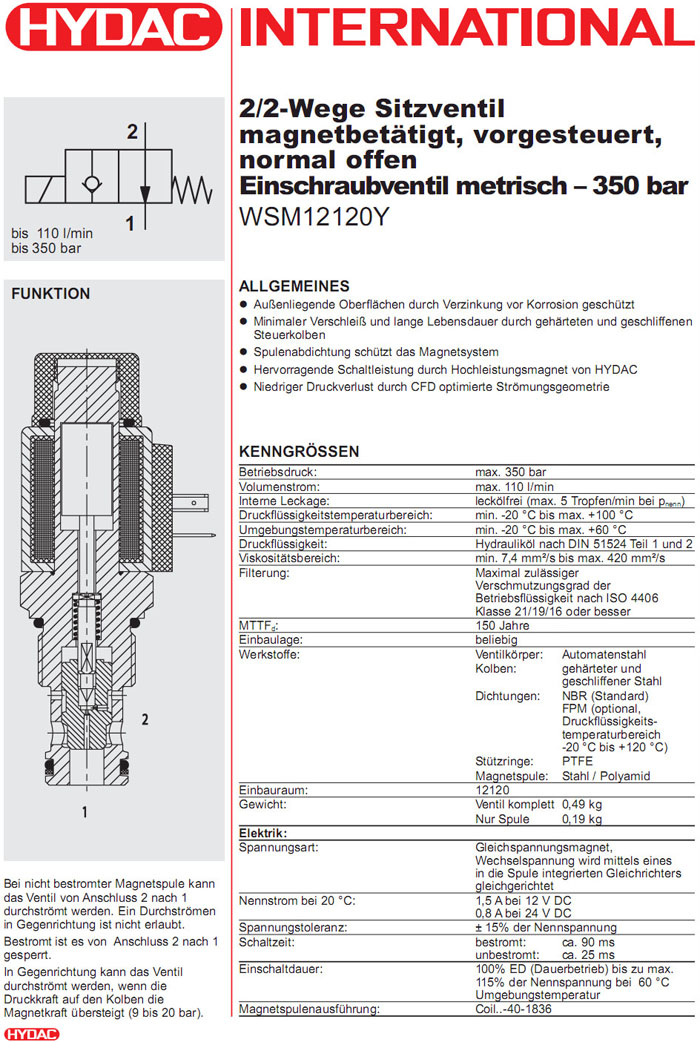 WSM121120Y-01-C-N-12DG,WSM121120Y-01-C-N-24DG,WSM121120Y-01-C-N-230AG,HYDAC電磁2/2方向座閥