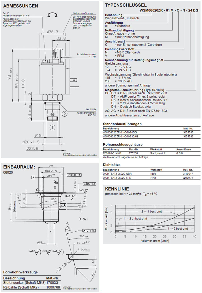 WSM06020ZR-01-C-N-24DG,WSM06020ZR-01-C-N-230AG,HYDAC電磁2/2方向座閥