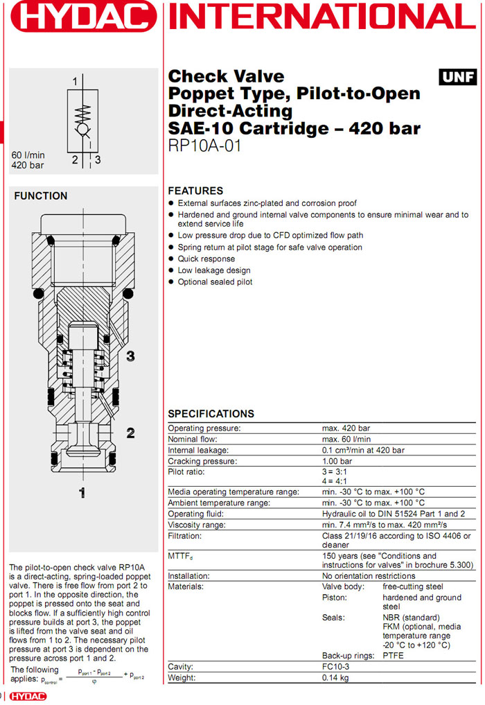 RP10A-01-C-N-15-3,RP10A-01-C-N-15-4,RP10A-01-C-NS-15-3,RP10A-01-C-NS-15-4,HYDAC止回閥 |
