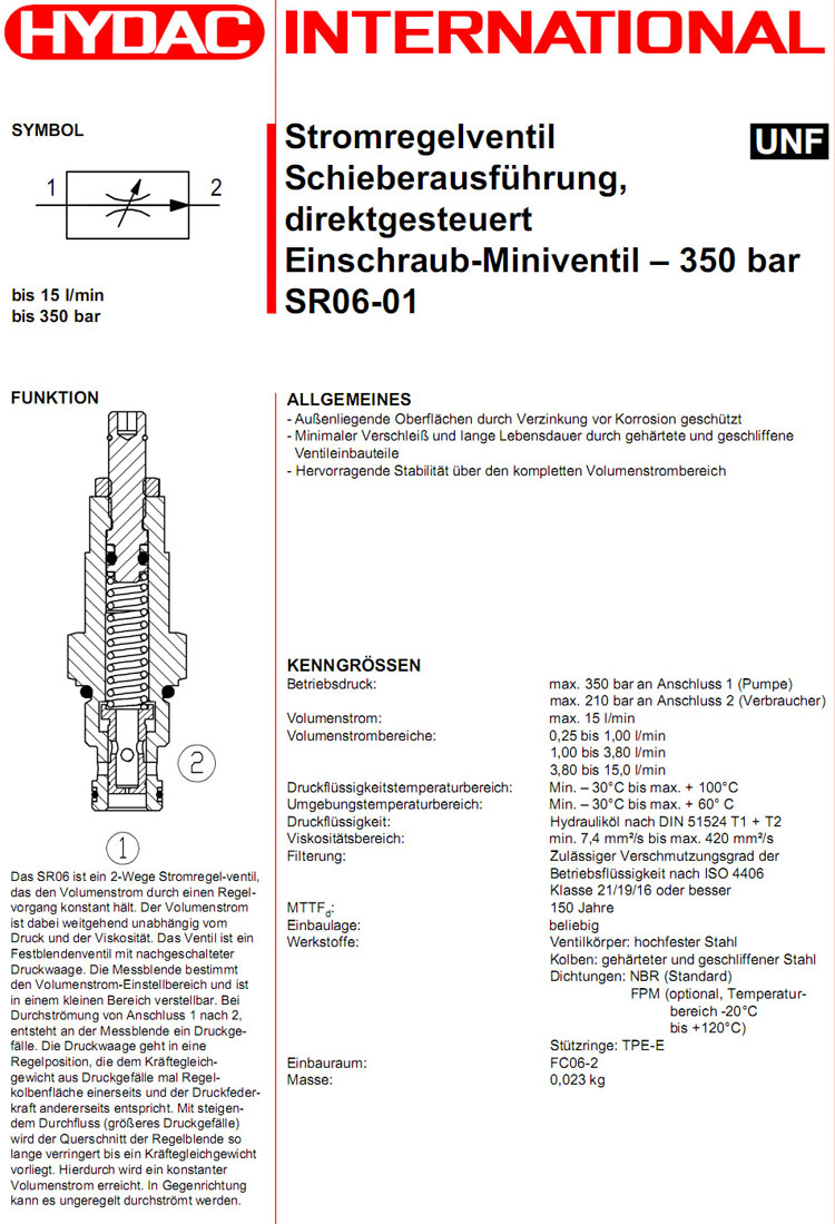 SR06-01-C-N-0.3V,SR06-01-C-N-1.0V,SR06-01-C-N-4.0V,HYDAC流量控制閥