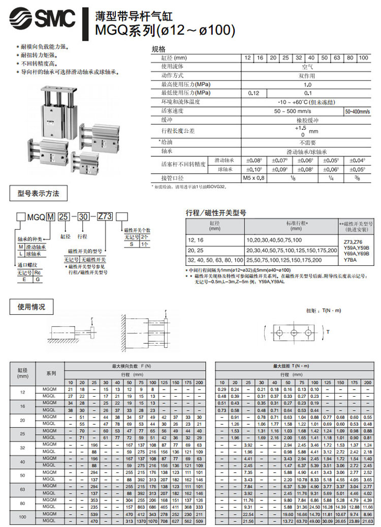 MGQL12,MGQL16,MGQL20,MGQL25,MGQL32,MGQL40,MGQL50,MGQL63,MGQL80,MGQL100,MGQL12-10,SMC薄型帶導桿氣缸