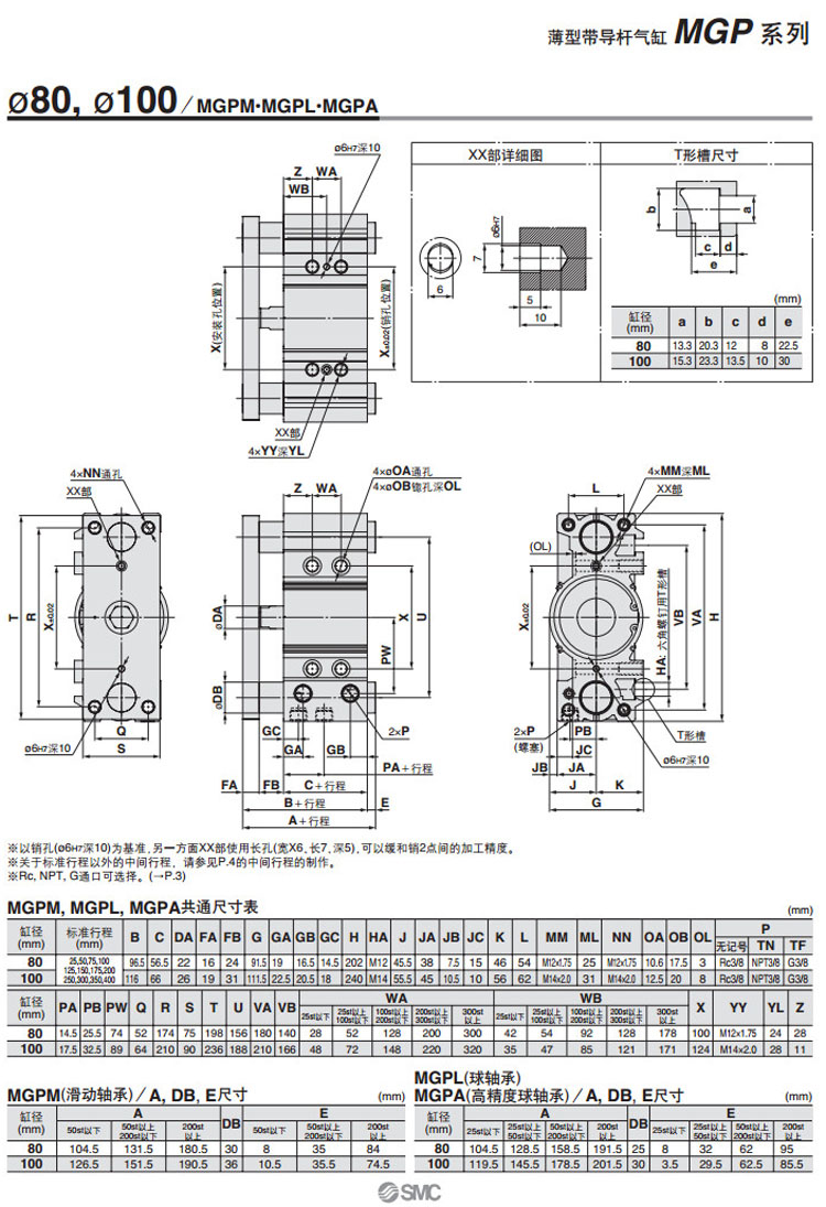 MGPM12-10,MGPL12-10,MGPA12-10,MGPM12-20,MGPL12-20,MGPA12-20,SMC薄型帶導桿氣缸