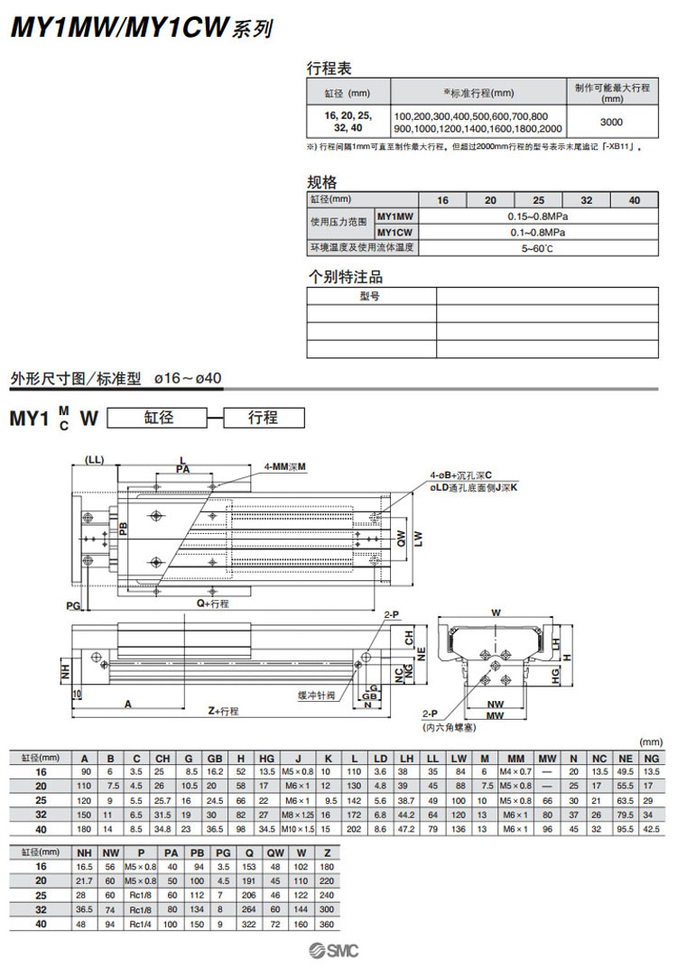 MY1CW40-1000,MY1CW40-1200,MY1CW40-1400,MY1CW40-1600,MY1CW40-1800,MY1CW40-2000,