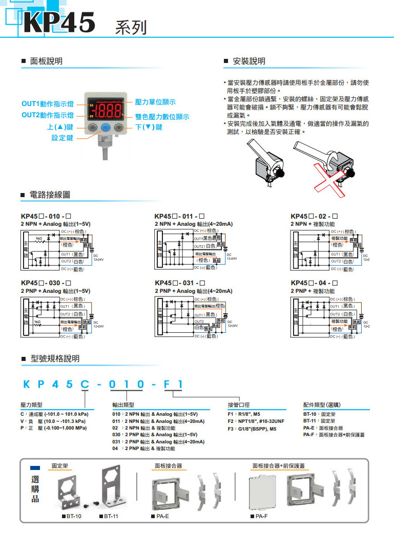 KP45C,KP45V,KP45P,KP45C-010-F1,KP45V-010-F2,KP45P-010-F3,KP45C-031-F2,KP45P-030-F2,KIDA壓力傳感器