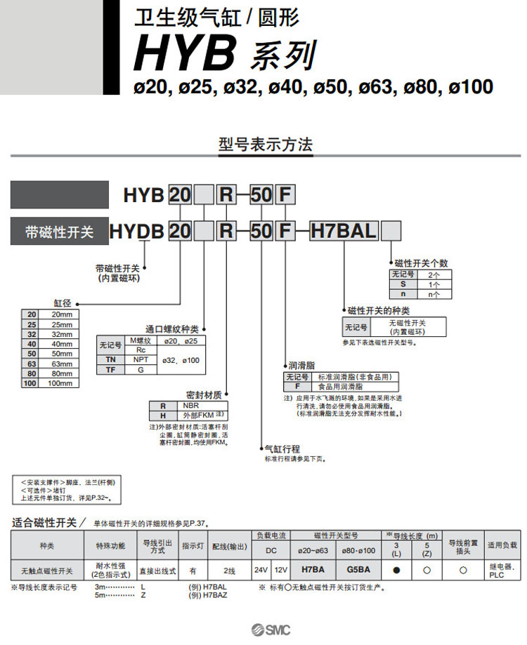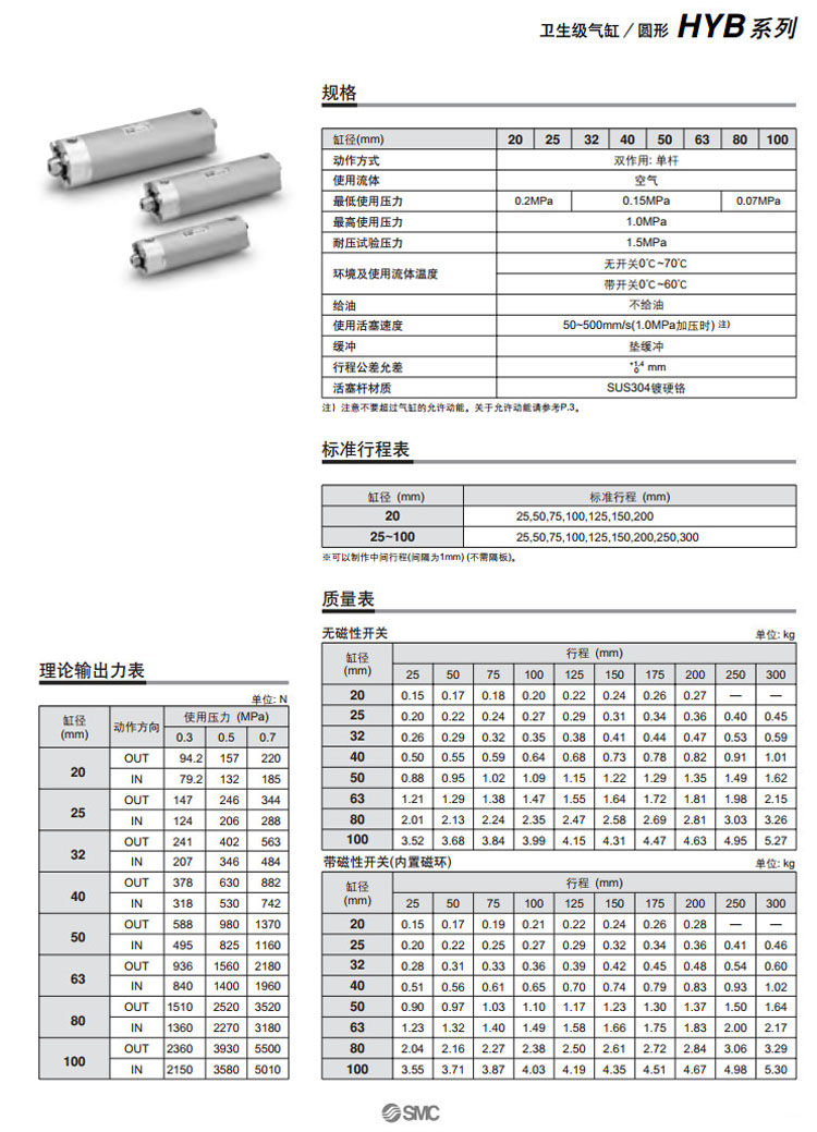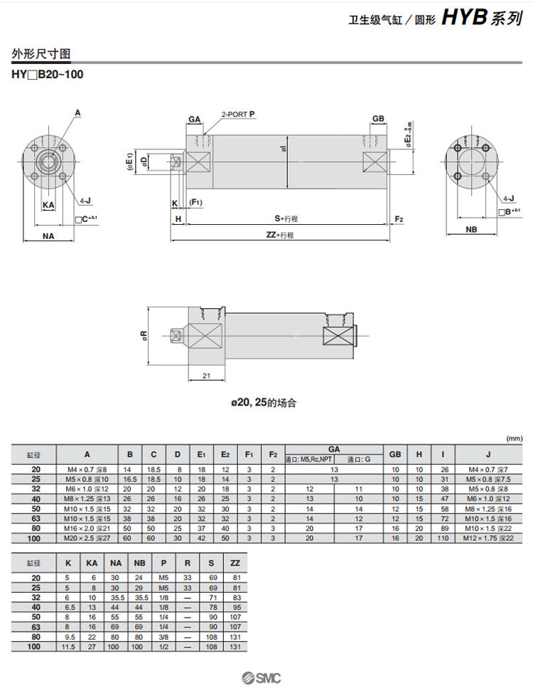 HYB20R-25,HYB20H-25,HYDB20R-25,HYDB20H-25,HYB25R-25,HYB25H-25,HYDB25R-25,SMC衛(wèi)生型氣缸