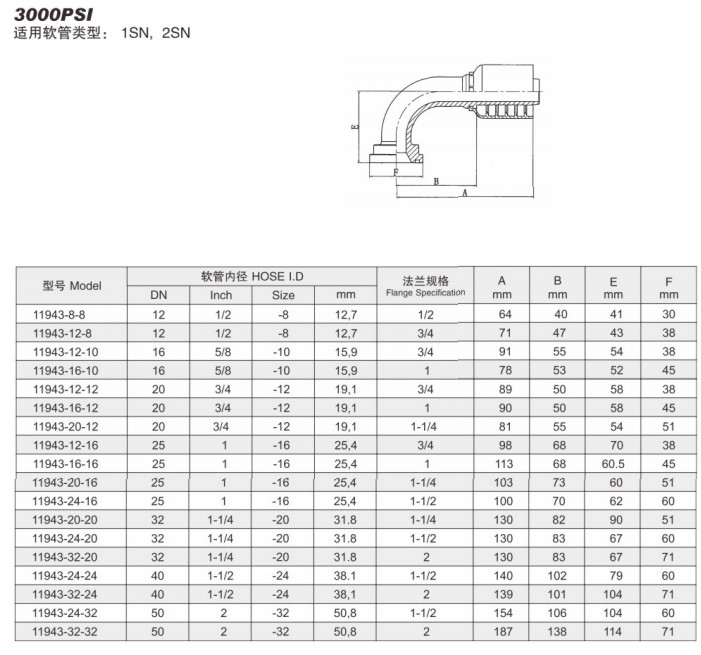 11943-8-8,11943-12-8,11943-12-10,11943-16-10,11943-12-12,11943-16-12,90度法蘭接頭