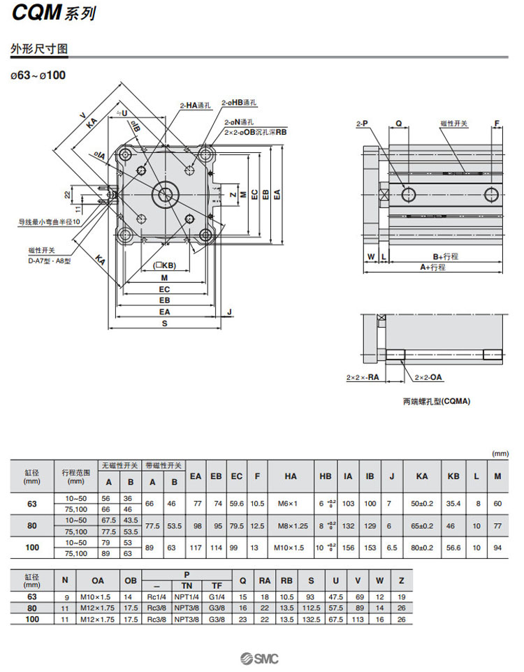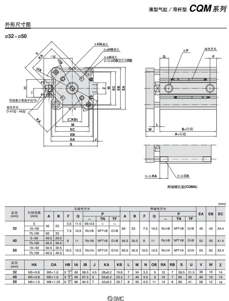 CDQMA32-5,CDQMA40-5,CDQMA50-10,CDQMA63-10,CDQMA80-10,CDQMA100-10,SMC薄型氣缸