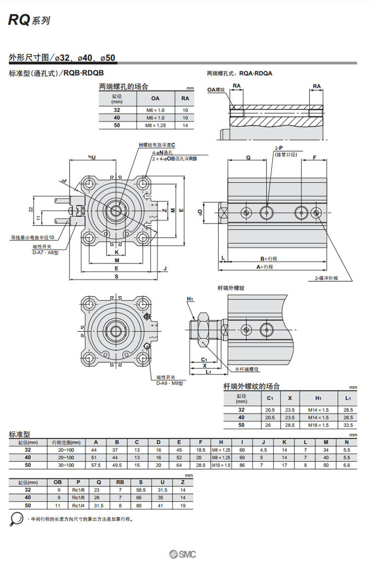 RQB20,RQL20,RQF20,RQG20,RQD20,RQA32,RDQB20,RDQL20,RDQF20,RDQG20,RDQD20,RDQA32,SMC薄型氣缸