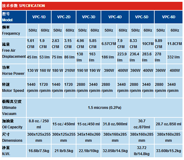 VPC-1D,VPC-2D,VPC-3D,VPC-4D,VPC-5D,VPC-6D,雙級真空泵