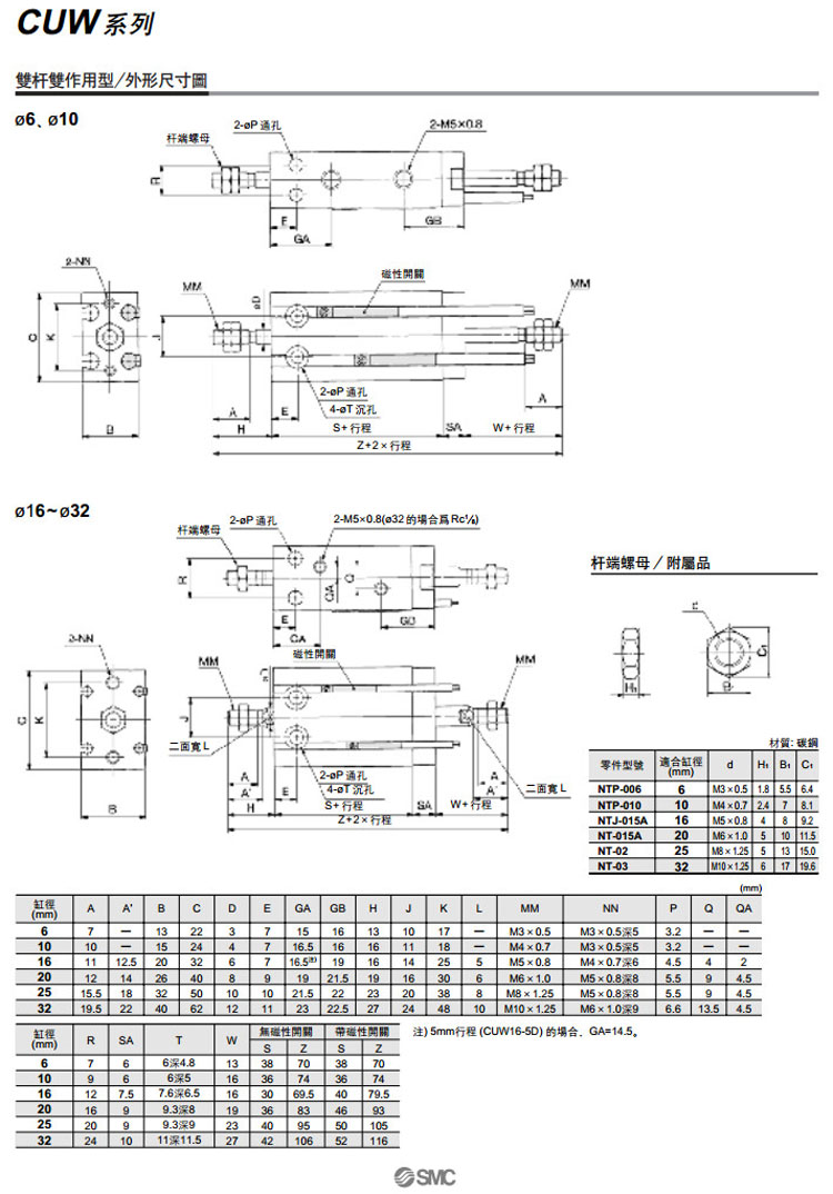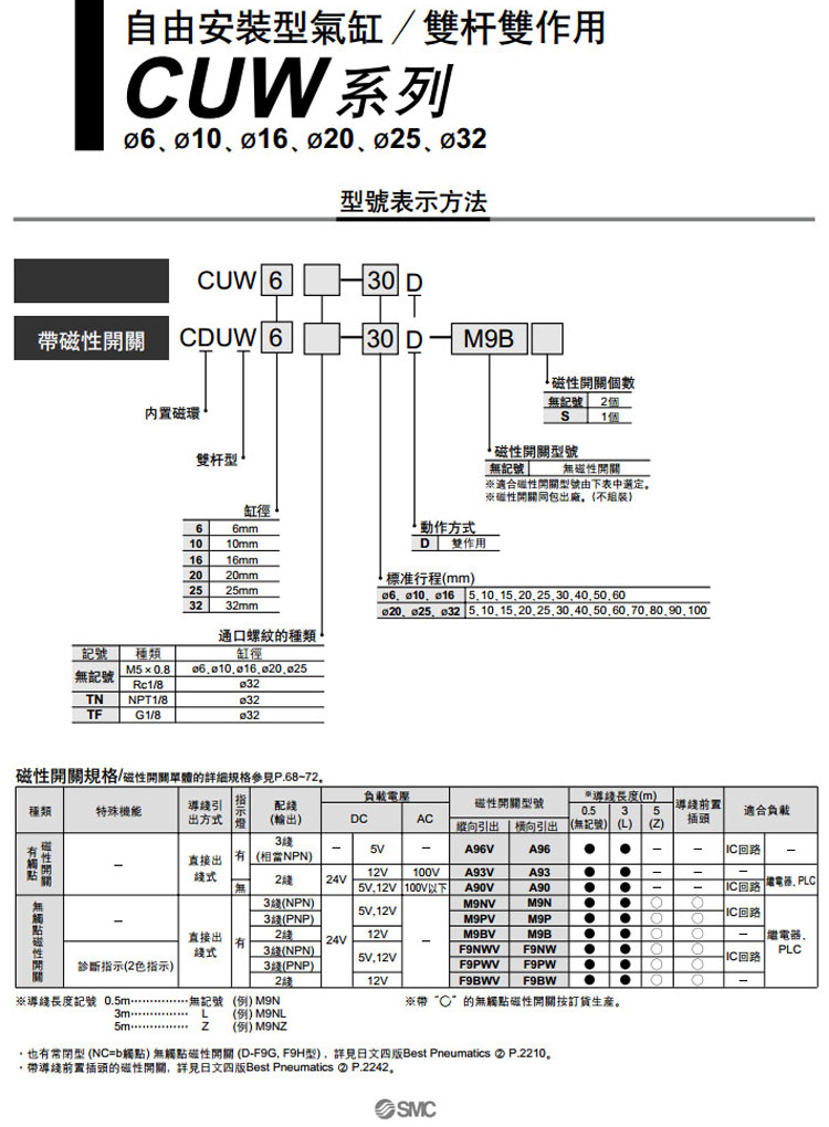 CUW6-5,CUW10-5,CUW16-5,CUW20-5,CUW25-5,CUW32-5,CDUW6-5,CDUW10-5,CDUW16-5,CDUW20-5,CDUW25-5,CDUW32-5,SMC自由安裝型氣缸