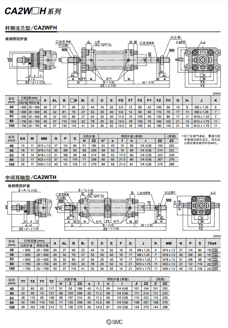 CA2WTH50-500,CA2WTH63-500,CA2WTH80-500,CA2WTH100-500,CA2WBH50-600,CA2WBH63-600,CA2WBH80-600,CA2WBH100-600,