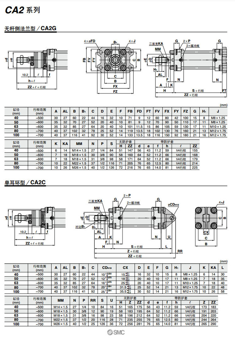 CA2D80-600,CA2D100-600,CA2T50-600,CA2T63-600,CA2T80-600,CA2T100-600,CA2B80-700,CA2B100-700,