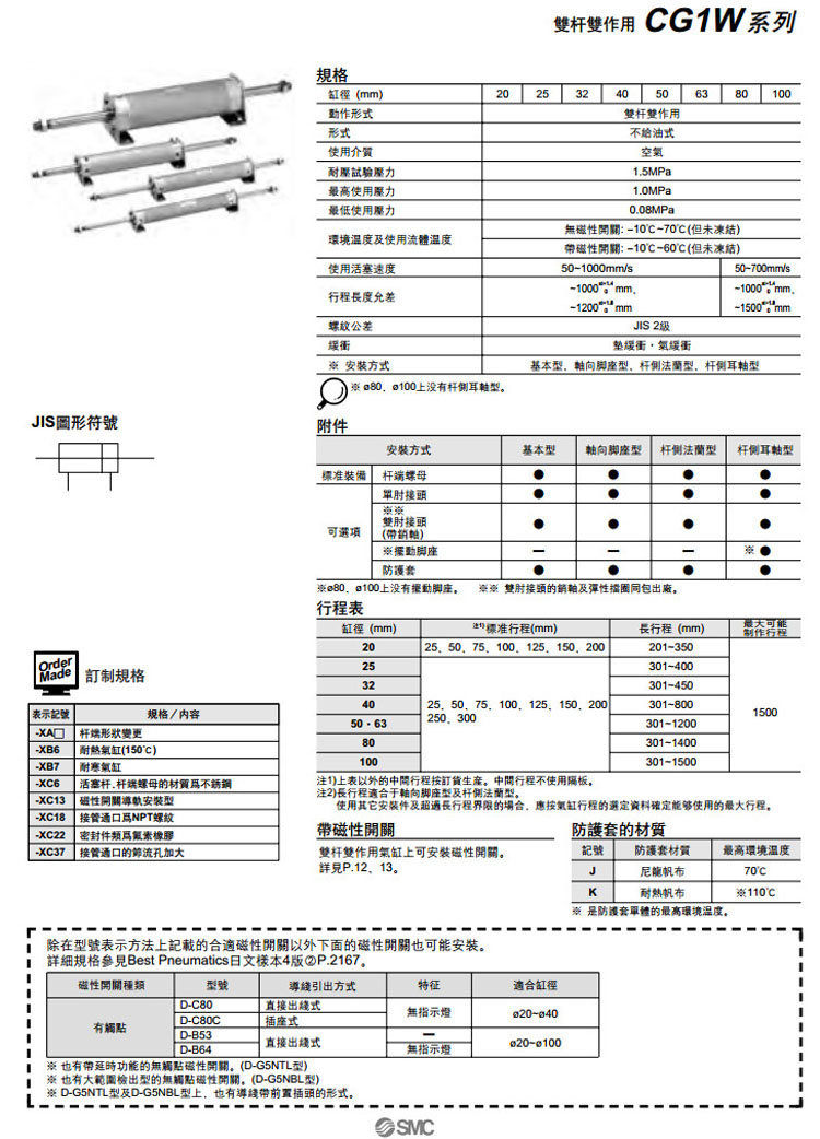 CDG1WBN20-25,CDG1WLN20-25,CDG1WBN20-25,CDG1WLN20-25,CDG1WFN20-25,CDG1WUN20-25,SMC雙桿雙作用氣缸