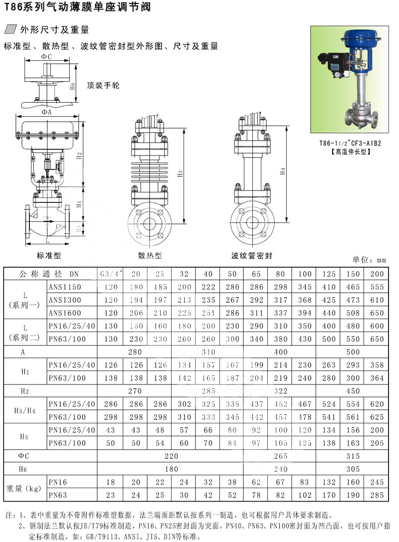 T86-16C,T86-16B,T86-25C,T86-40B,T86-63C,T86-100B,氣動薄膜單座調(diào)節(jié)閥 |