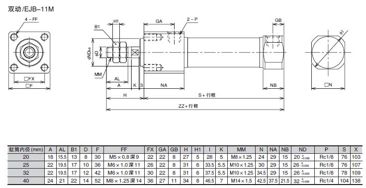 EJA-11M-20,EJA-11M-32,EJA-11M-40,EJB-11M-25,EJB-11M-32,EJB-11M-40,小型氣缸