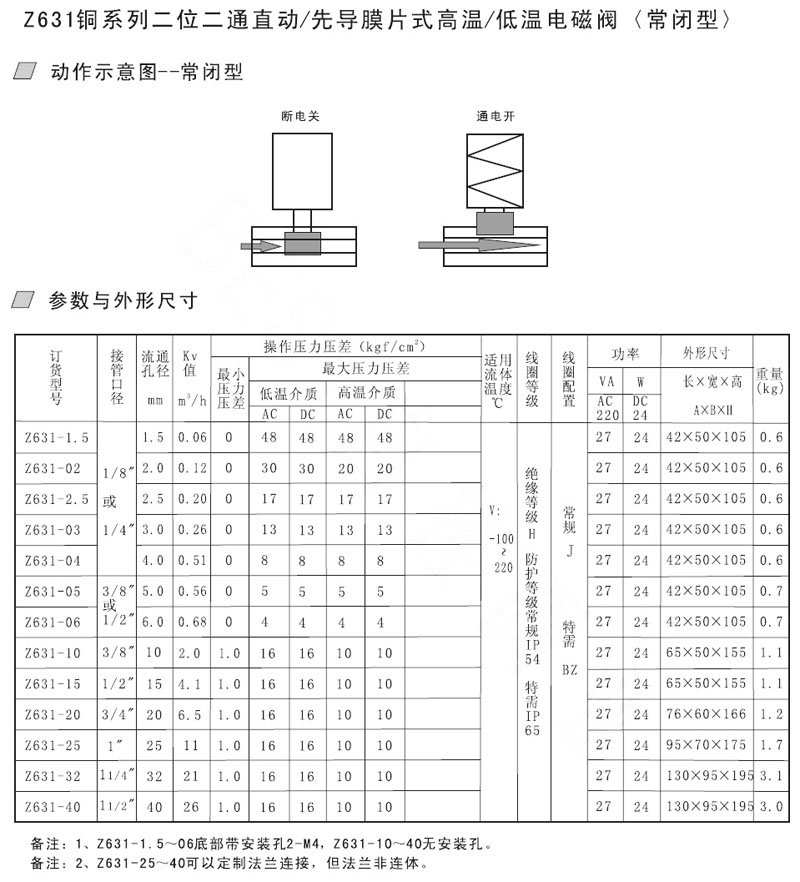 Z631-1.5,Z631-02,Z631-2.5,Z631-03,Z631-04,Z631-05,Z631-06,Z631-10,膜片式電磁閥