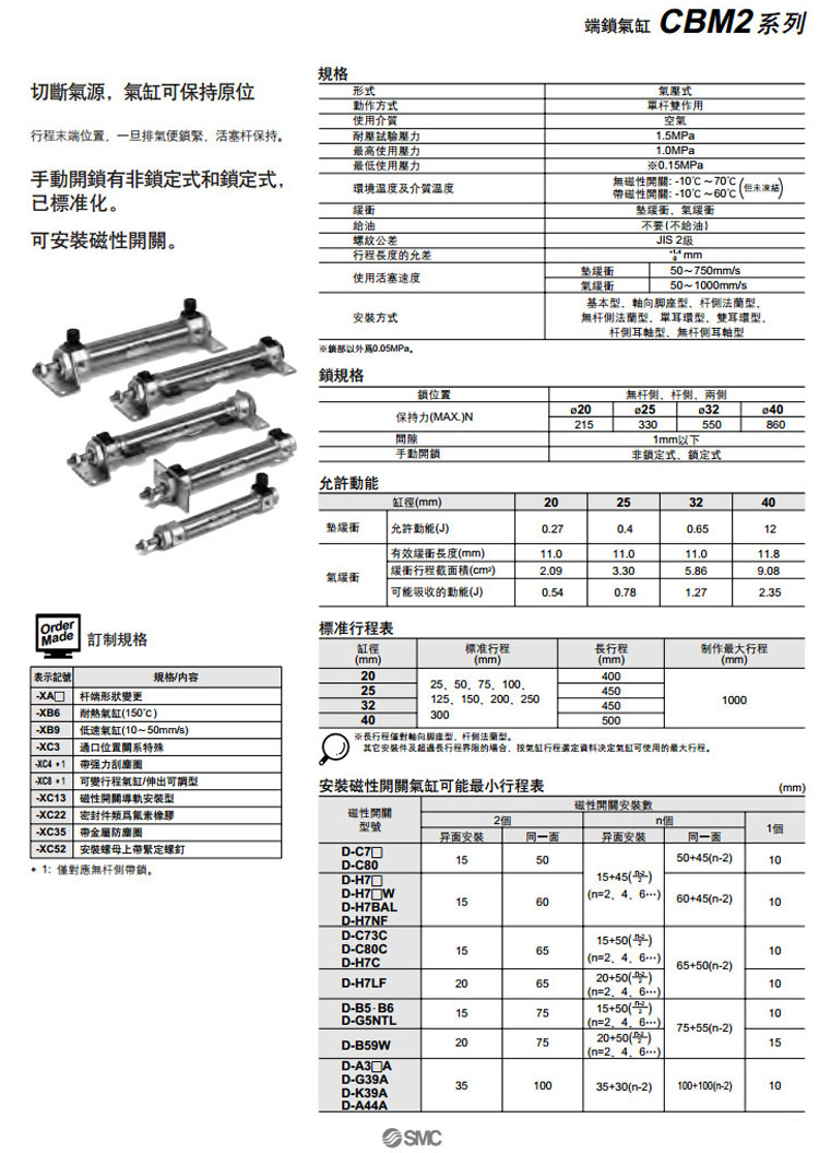 CBM2B40-300,CBM2L40-300,CBM2F40-300,CBM2G40-300,CBM2C40-300,CBM2D40-300,CBM2U40-300,CBM2T40-300,CBM2E40-300,SMC端鎖氣缸