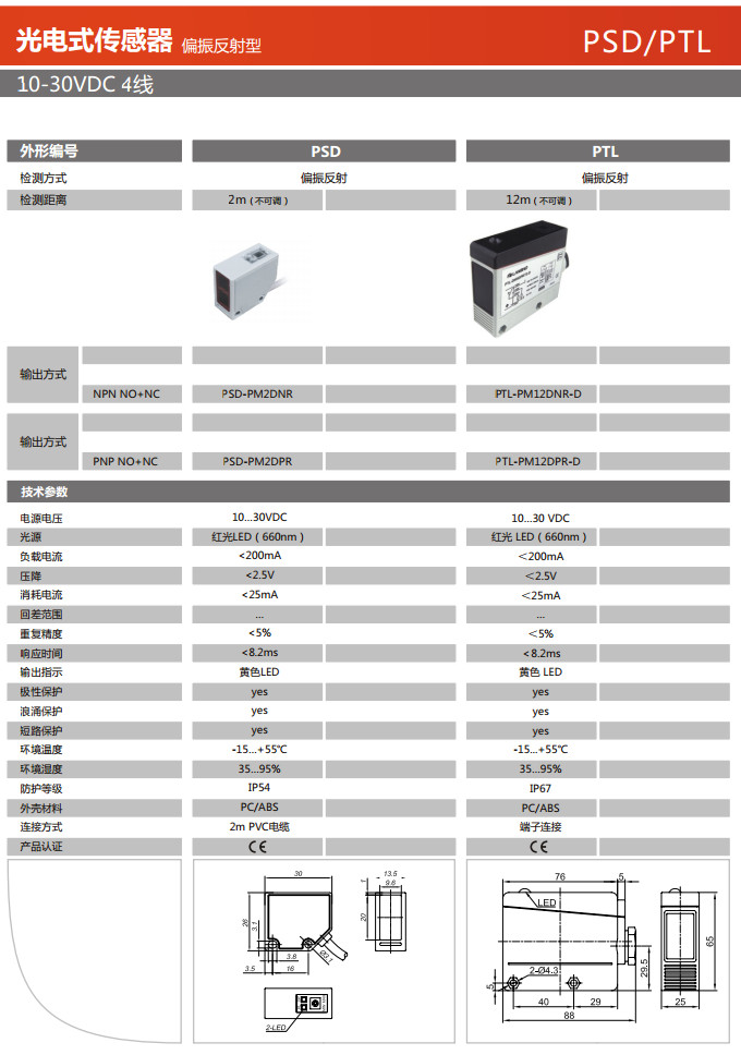PSD-PM2DNR,PSD-PM2DPR,PTL-PM12DNR-D,PTL-PM12DPR-D,光電式傳感器