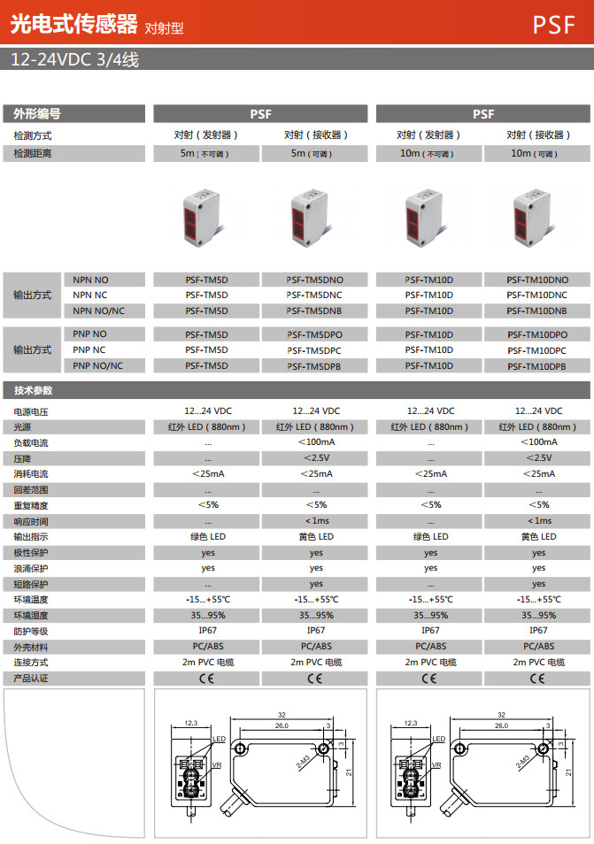 PSF-TM5D,PSF-TM5DNO,PSF-TM5DNC,PSF-TM5DNB,PSF-TM10D,PSF-TM10DNO,PSF-TM10DNC,光電式傳感器