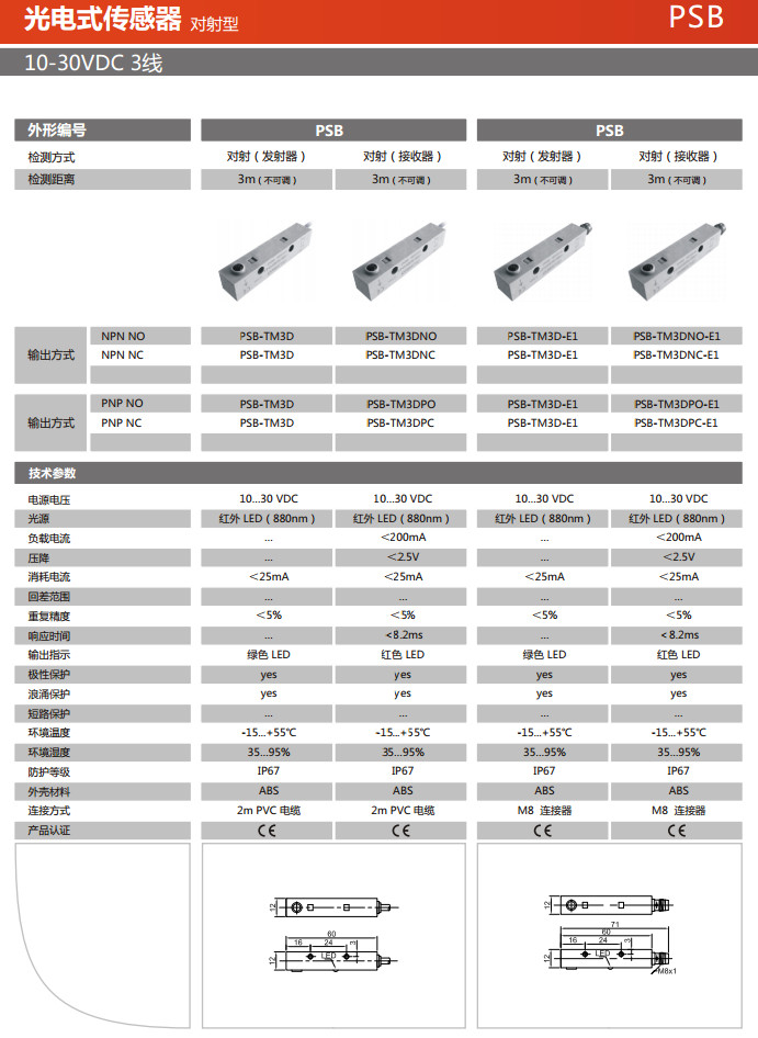 PSB-TM3D,PSB-TM3DNO,PSB-TM3DNC,PSB-TM3DPO,PSB-TM3DPC,PSB-TM3D-E1,PSB-TM3DNO-E1,光電式傳感器