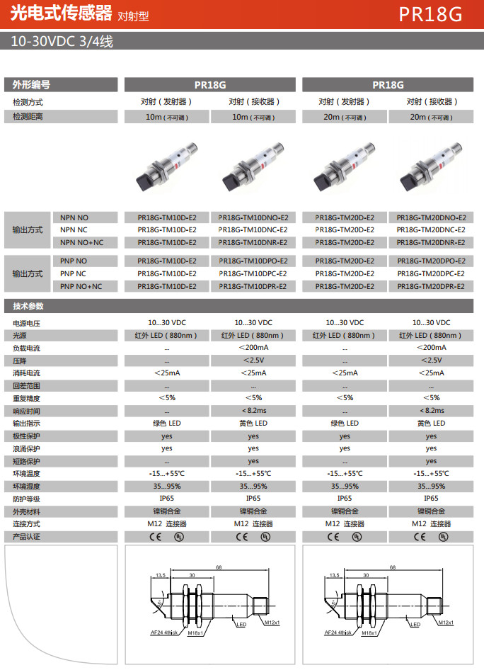 PR18G-TM10D-E2,PR18G-TM10DNO-E2,PR18G-TM10DNC-E2,PR18G-TM10DNR-E2,PR18G-TM10DPO-E2,光電式傳感器 |