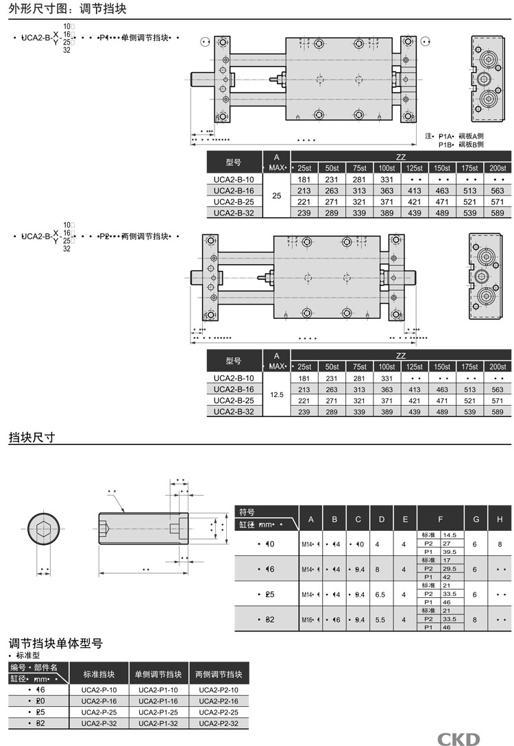 UCA2-B-X-10-25,UCA2-B-Y-10-25,UCA2-BL-X-10-25,UCA2-BL-Y-10-25,CKD組合式氣缸