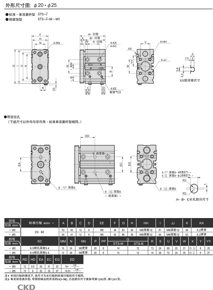 STS-M-32C-25,STS-B-32C-25,STL-B-32C-50,STL-M-32C-75,STL-M-32C-50,CKD帶導桿氣缸