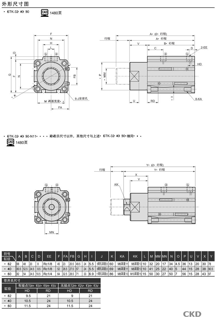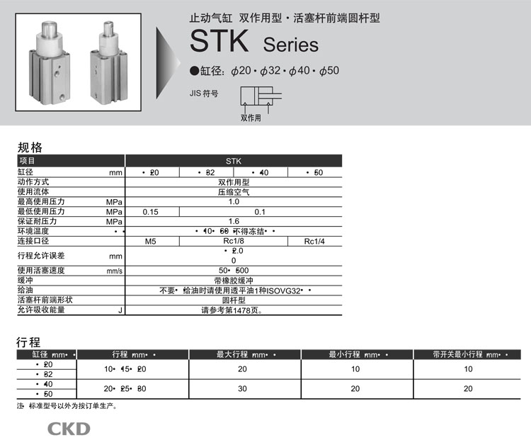 STK-20-10,STK-32-10,STK-40-20,STK-50-20,STK-20-15,STK-40-25,STK-50-30,CKD止動氣缸