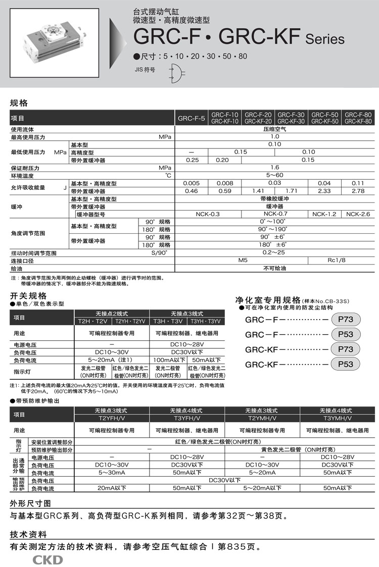 GRC-F-5,GRC-F-10,GRC-F-20,GRC-F-80,GRC-F-K-10,GRC-F-K-20,GRC-F-K-30,GRC-F-K-50,GRC-F-30,GRC-F-50,GRC-F-K-80,CKD臺(tái)式擺動(dòng)氣缸