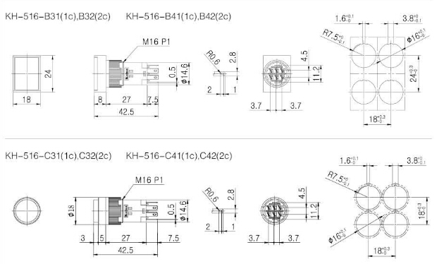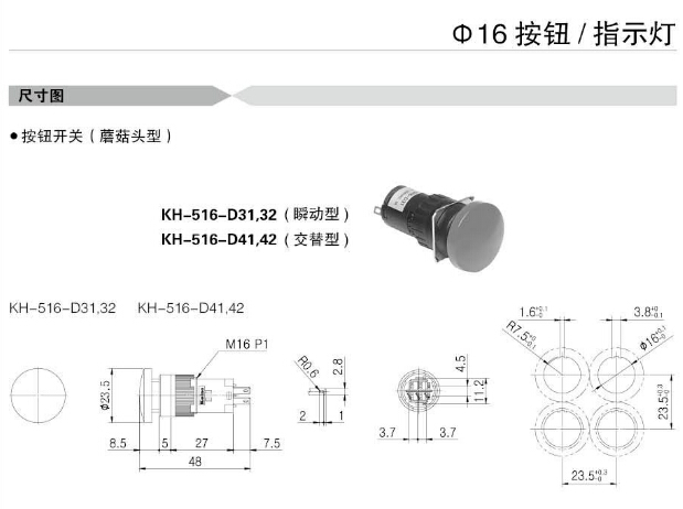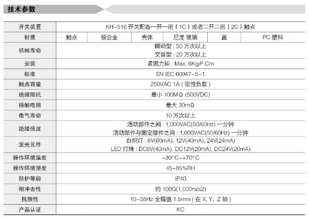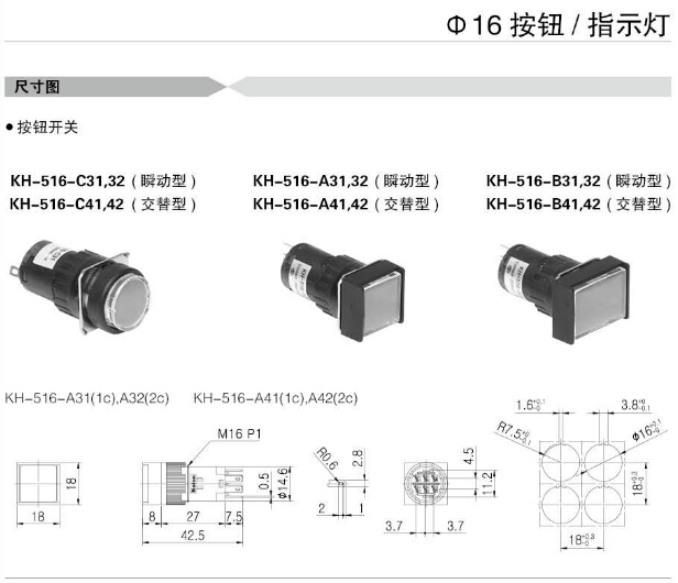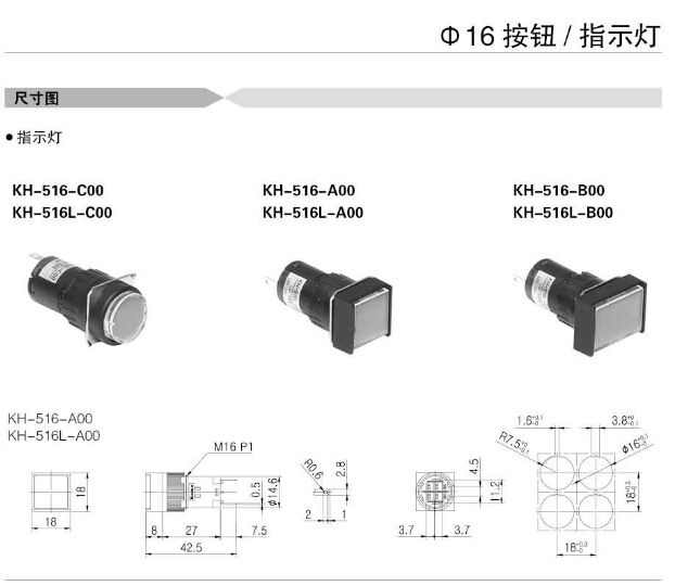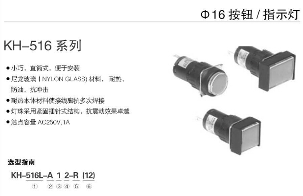 型號: KH-516-A00,KH-516-B00,KH-516-C00,KH-516L-A00,KH-516L-B00,KH-516L-C00,KoinoΦ16指示燈
