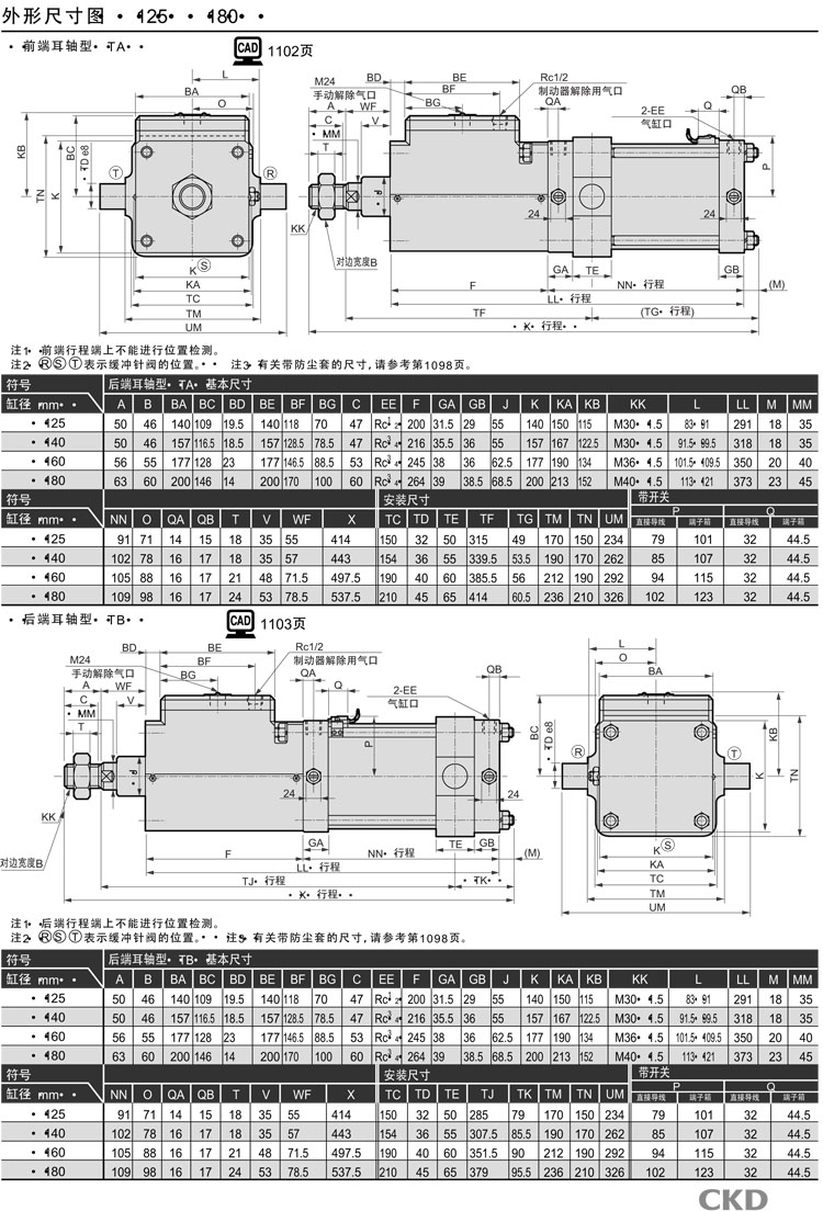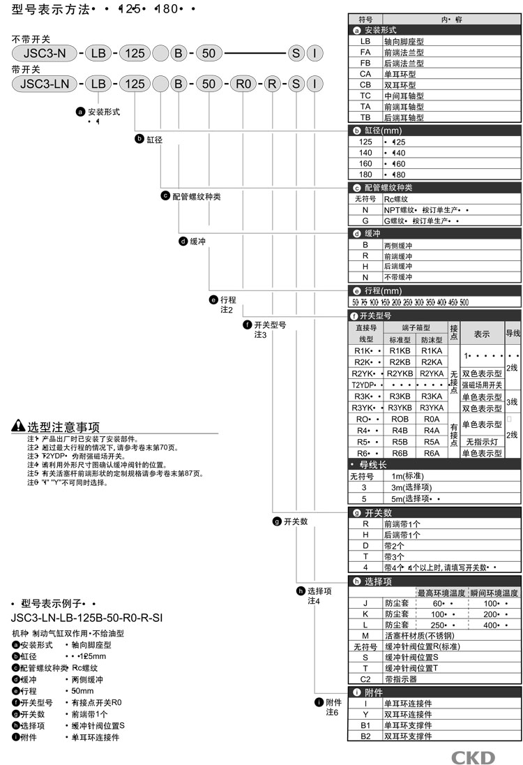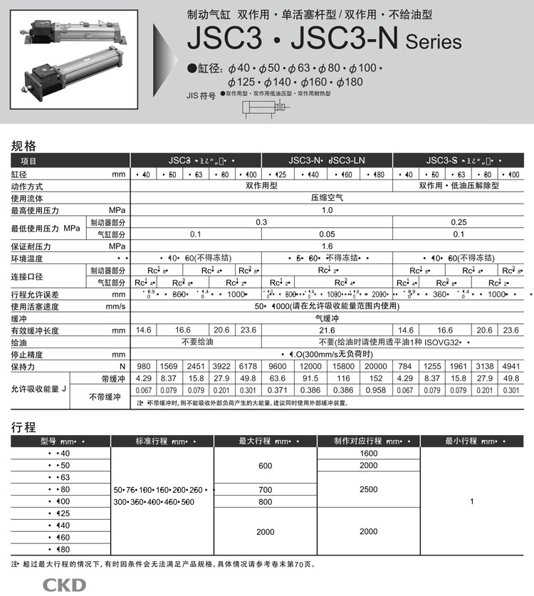JSC3-SL2-TB-40B-300,JSC3-SL2-TB-40B-350,JSC3-SL2-TB-40B-400,JSC3-SL2-TB-40B-450,JSC3-SL2-TB-40B-500,CKD制動(dòng)氣缸