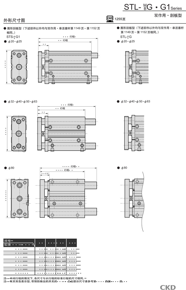 STL-BG1-80-75,STL-BG1-80-100,STL-BG1-80-125,STL-BG1-80-150,STL-BG1-80-175,STL-BG1-80-200,CKD帶導桿氣缸