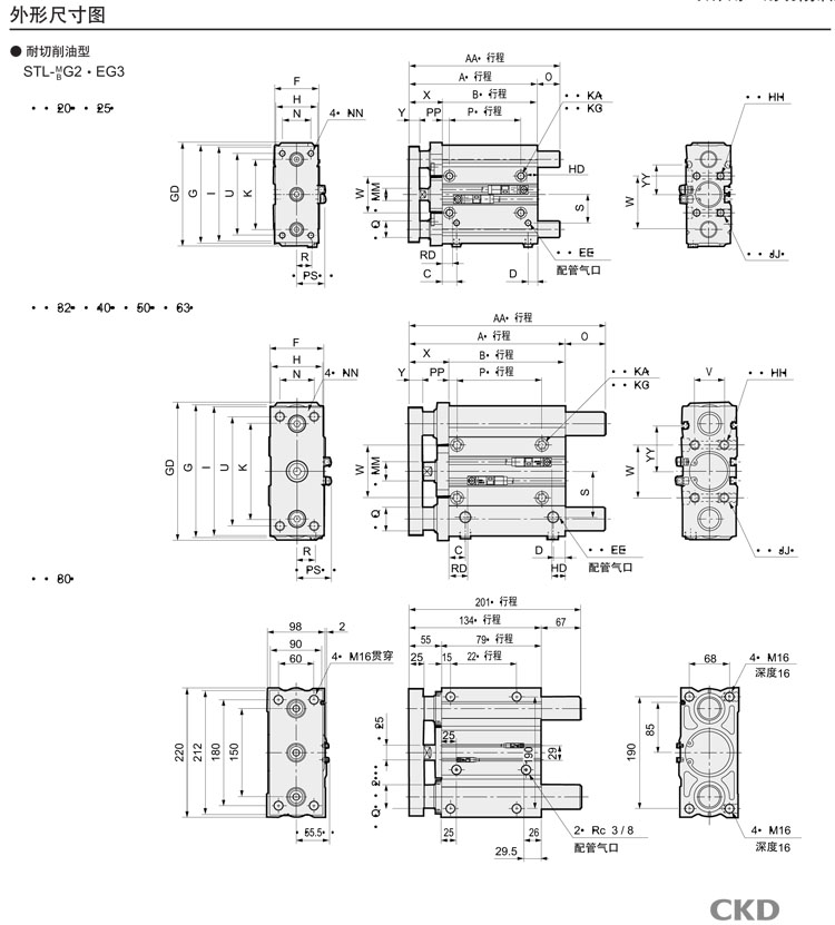 STL-BG3-80-75,STL-BG3-80-100,STL-BG3-80-125,STL-BG3-80-150,STL-BG3-80-175,STL-BG3-80-200,CKD帶導(dǎo)桿氣缸