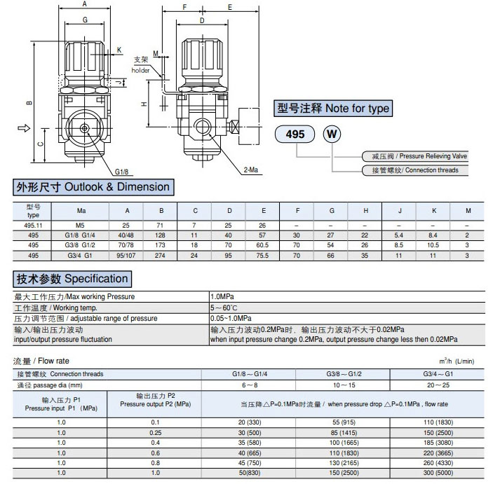 495-G1/8,495-G1/4,495-G3/8,495-G1/2,495-G3/4,495-G1,減壓閥