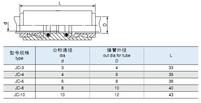JC-3,JC-4,JC-6,JC-8,JC-10,插入式直通管接頭