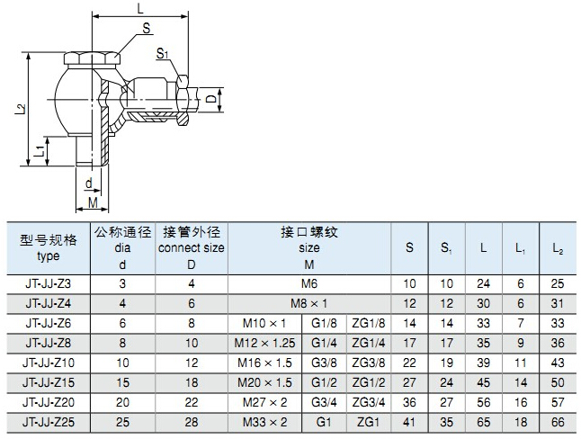 JTL-JJ-Z3,JT-JJ-Z4,JT-JJ-Z6,JT-JJ-Z8,JT-JJ-Z10,JT-JJ-Z15,JT-JJ-Z20,JT-JJ-Z25,卡套式直角鉸接終端管接頭 |