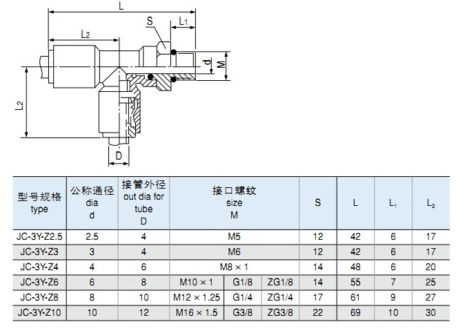 JC-3Y-Z2.5,JC-3Y-Z3,JC-3Y-Z4,JC-3Y-Z6,JC-3Y-Z8,JC-3Y-Z10,插入式Y(jié)形終端管接頭