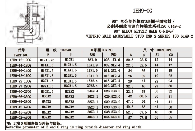 1EH9-12-100G,1EH9-14-120G,1EH9-16-140G,1EH9-18-160G,1EH9-22-180G,平面密封接頭