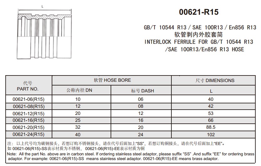 00621-06(R15),00621-08(R15),00621-12(R15),00621-16(R15),00621-20(R15),00621-24(R15),扣壓式軟管接頭
