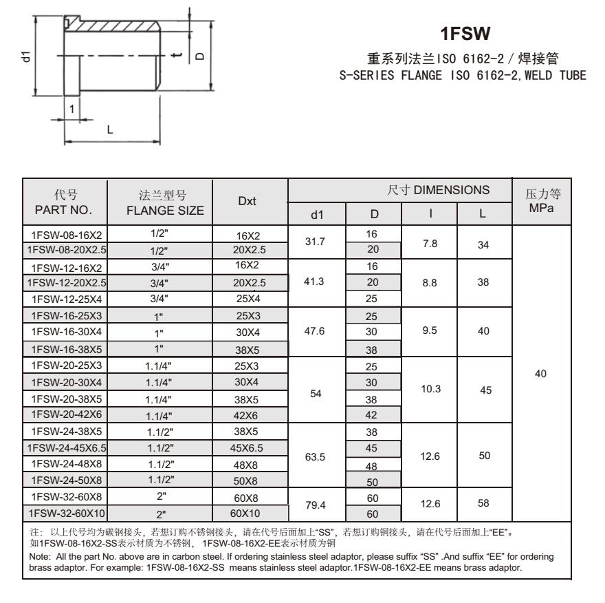 1FSW-16-38×5,1FSW-20-25×3,1FSW-20-30×4,1FSW-20-38×5,1FSW-20-42×6,1FSW-24-38×5,