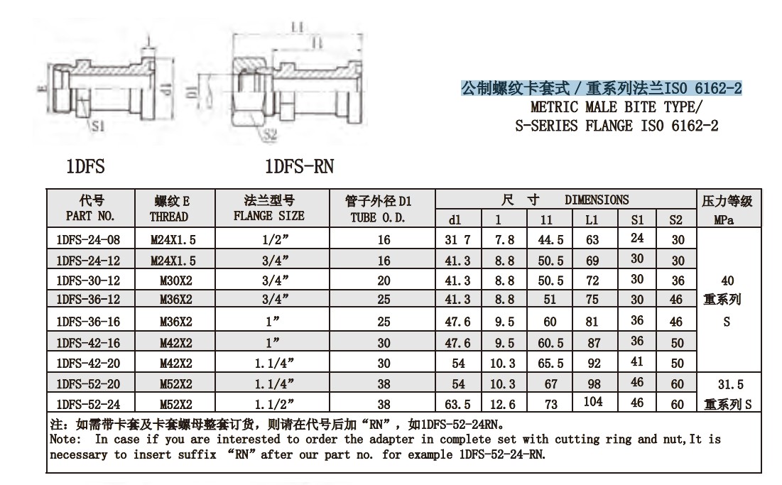 1DFS-24-08,1DFS-30-12,1DFS-36-12,1DFS-42-16,1DFS-52-20,1DFS-24-12,公制螺紋卡套接頭