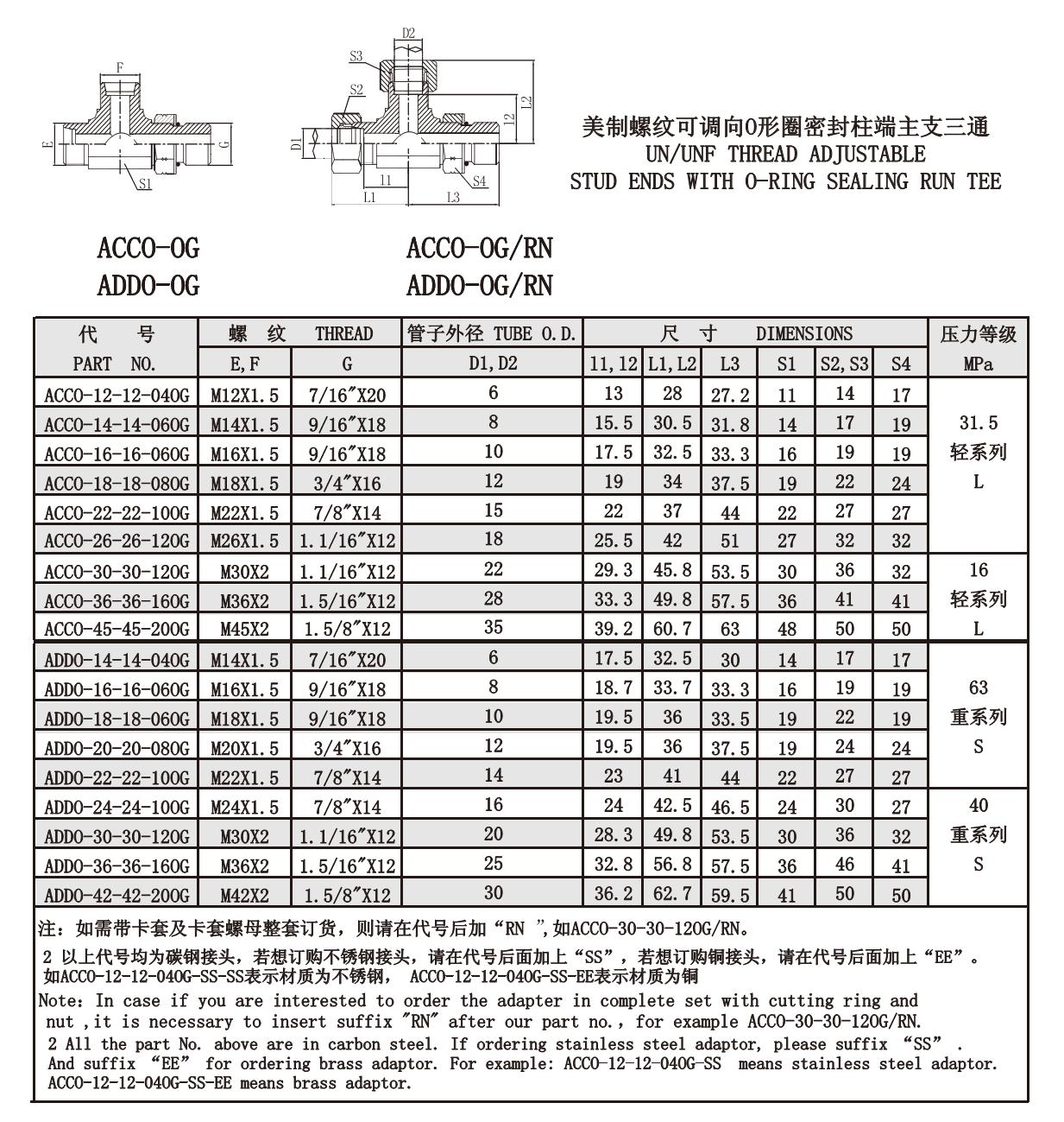 ACCO-12-12-040G,ACCO-14-14-060G,ACCO-16-16-060G,ADDO-30-30-120G,ADDO-36-36-160G,公制螺紋卡套接頭