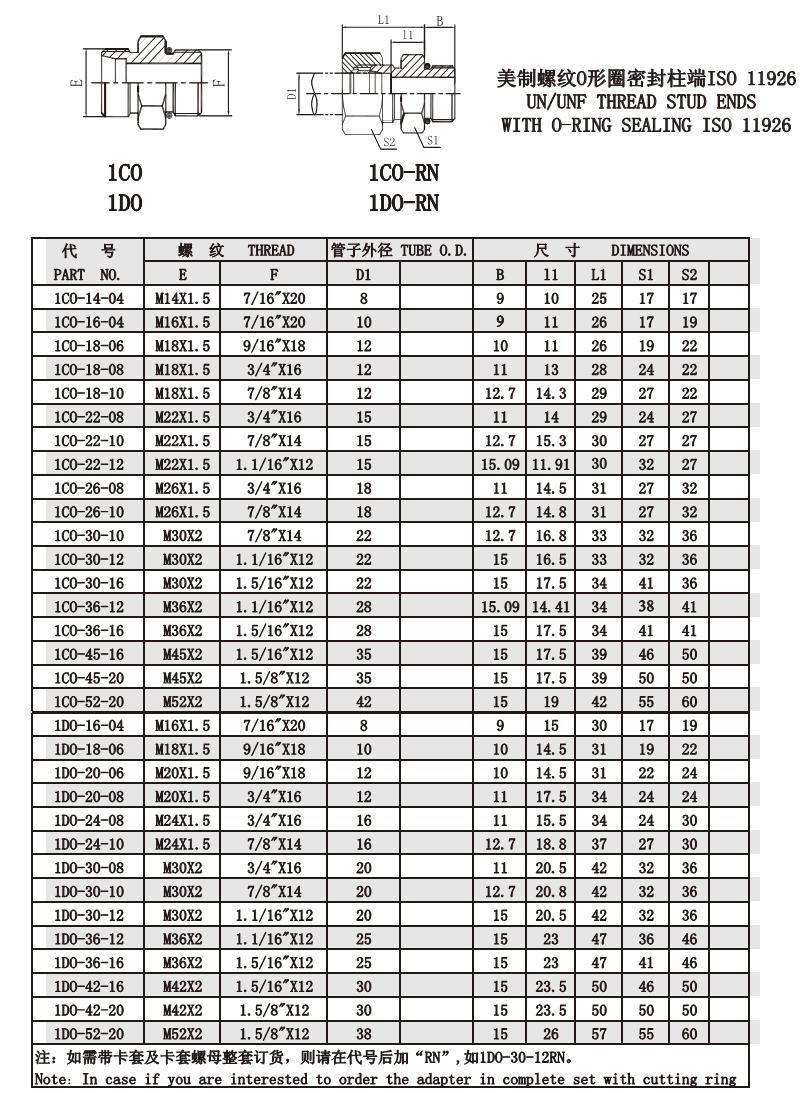 1CO-14-04,1CO-16-04,1CO-18-06,1CO-18-08,1DO-42-16,1DO-42-20,1DO-52-20,公制螺紋卡套接頭