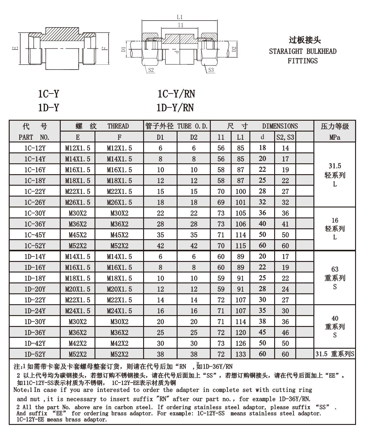 1C-12Y,1C-14Y,1C-16Y,1C-18Y,1C-22Y,1C-26Y,1D-24Y,1D-30Y,1D-36Y,1D-42Y,1D-52Y,過板接頭