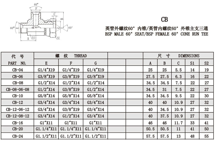 CB-04,CB-06,CB-08,CB-10,CB-12,CB-16,CB-20,CB-24,錐面密封接頭