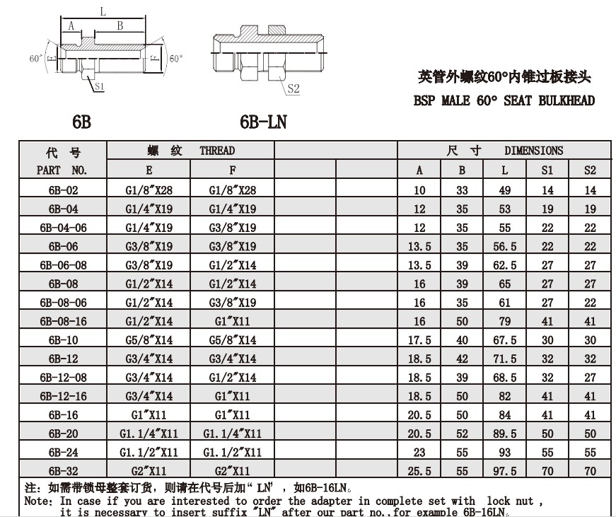 6B-02,6B-04,6B-06,6B-08,6B-10,6B-12,6B-16,6B-20,6B-24,6B-32,內(nèi)錐過板接頭